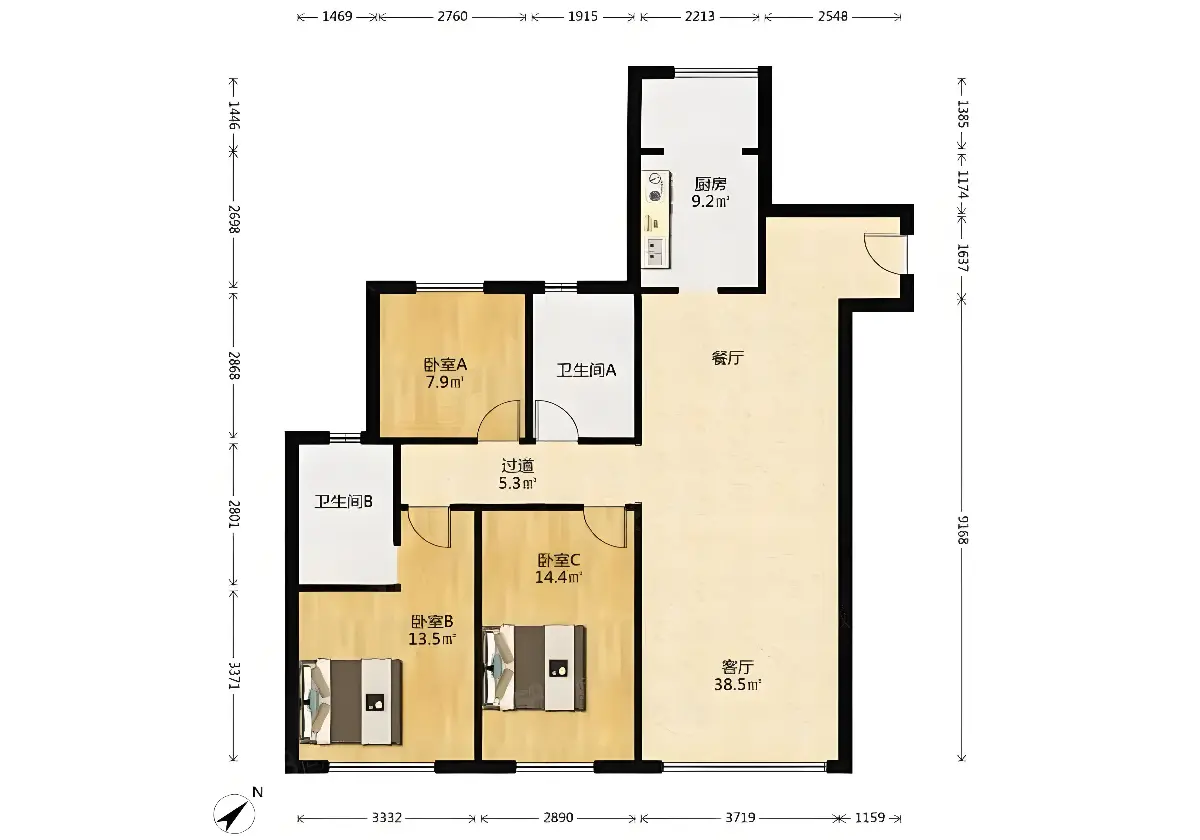 红星天铂南区 3室2厅2卫 117.11㎡