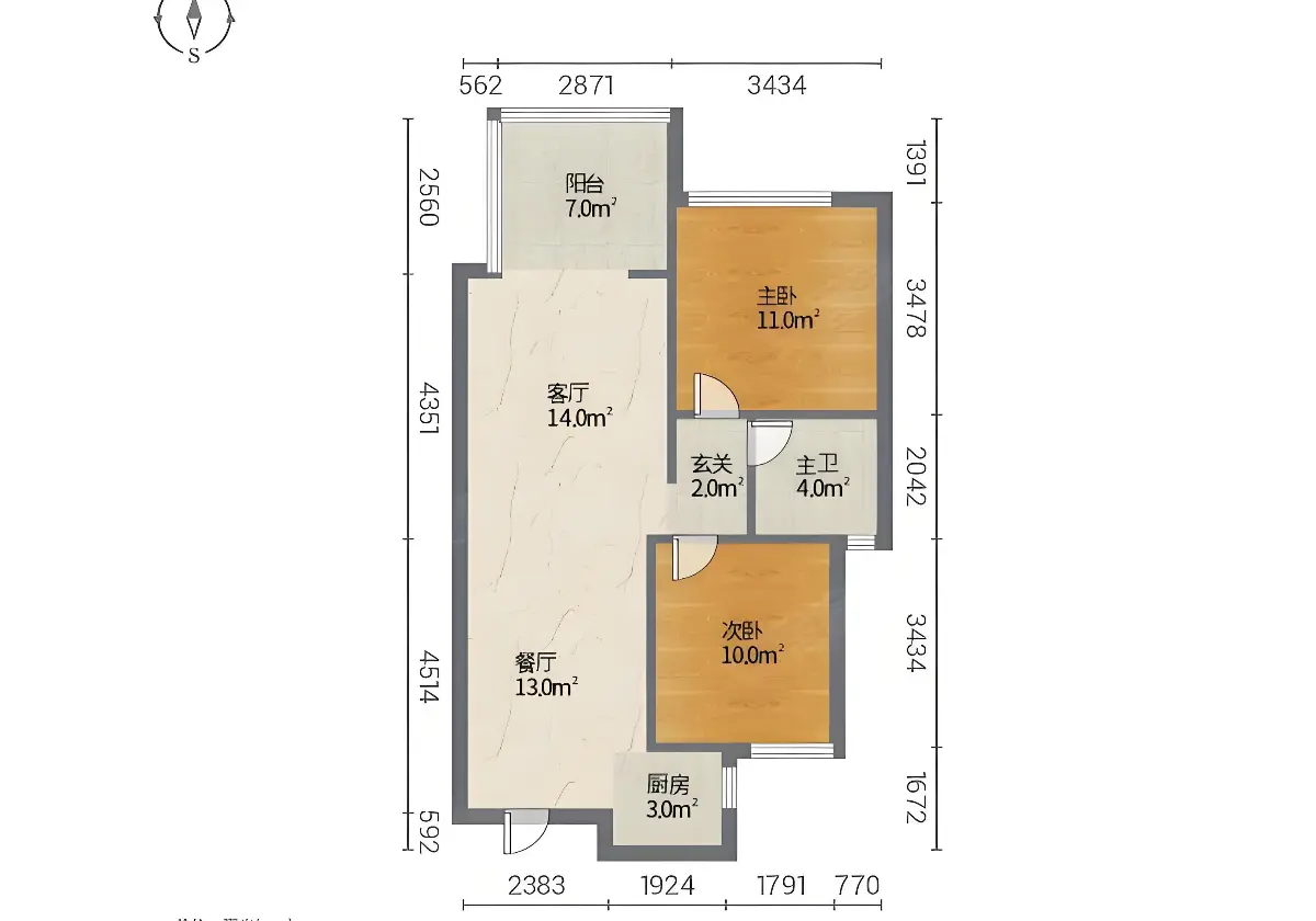 华夏御江府 /2室2厅1卫/72㎡