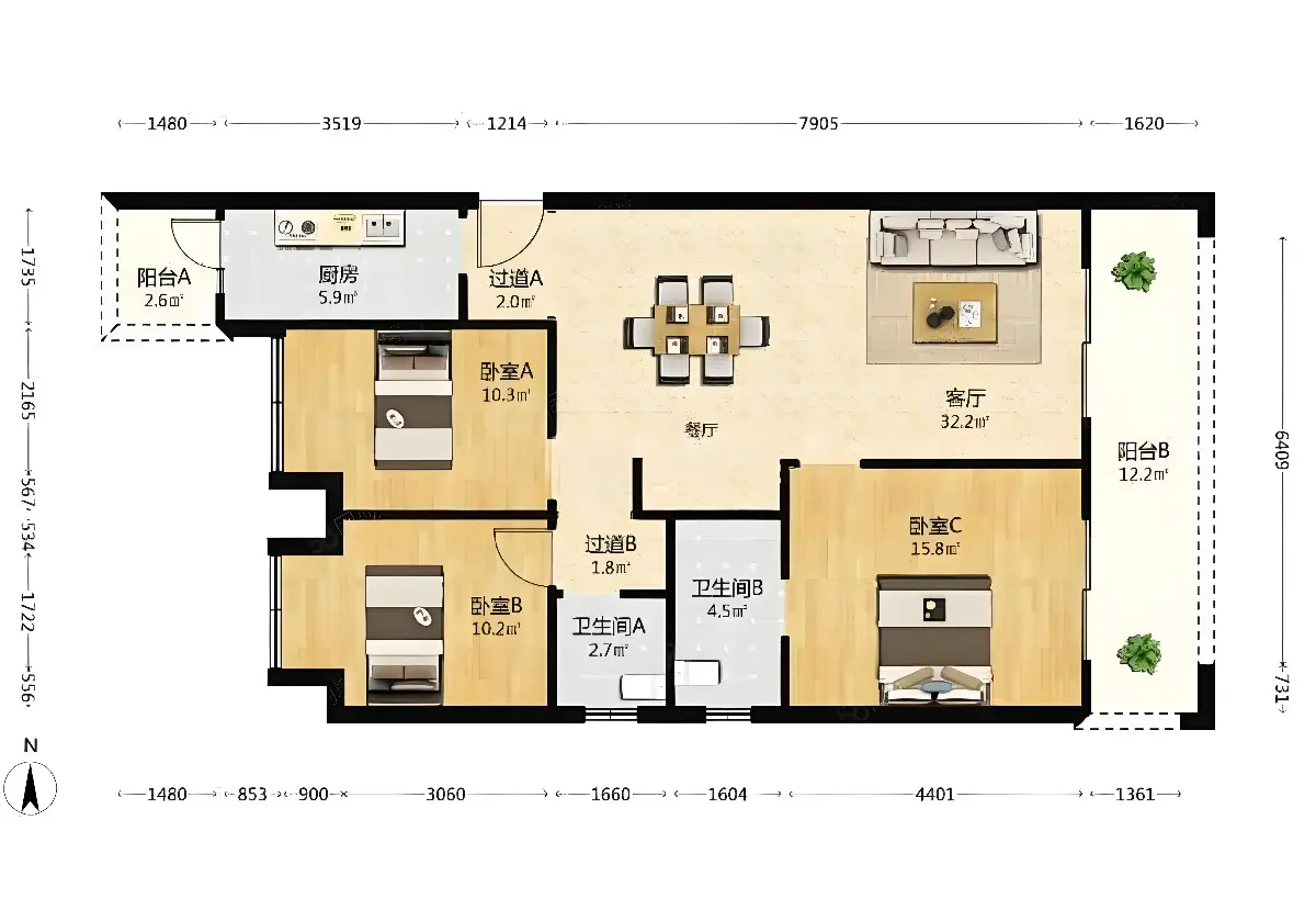 北大资源颐和1898(二期) 3室2厅2卫 124㎡