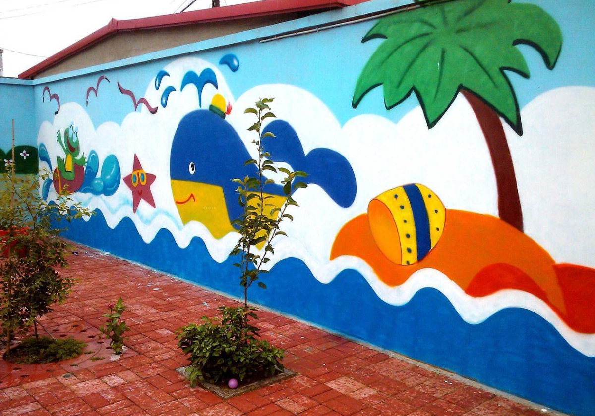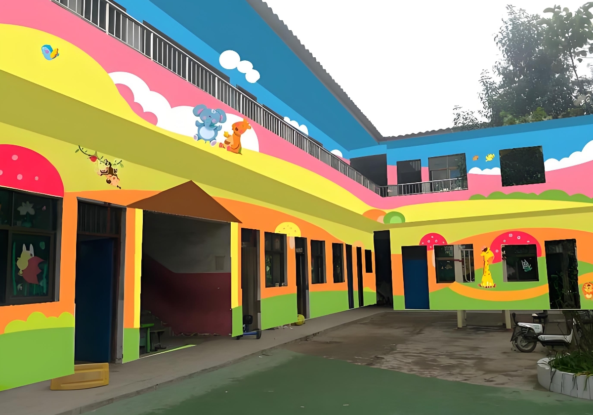 学校墙绘幼儿园彩绘乡村墙绘PVC地胶悬浮地板